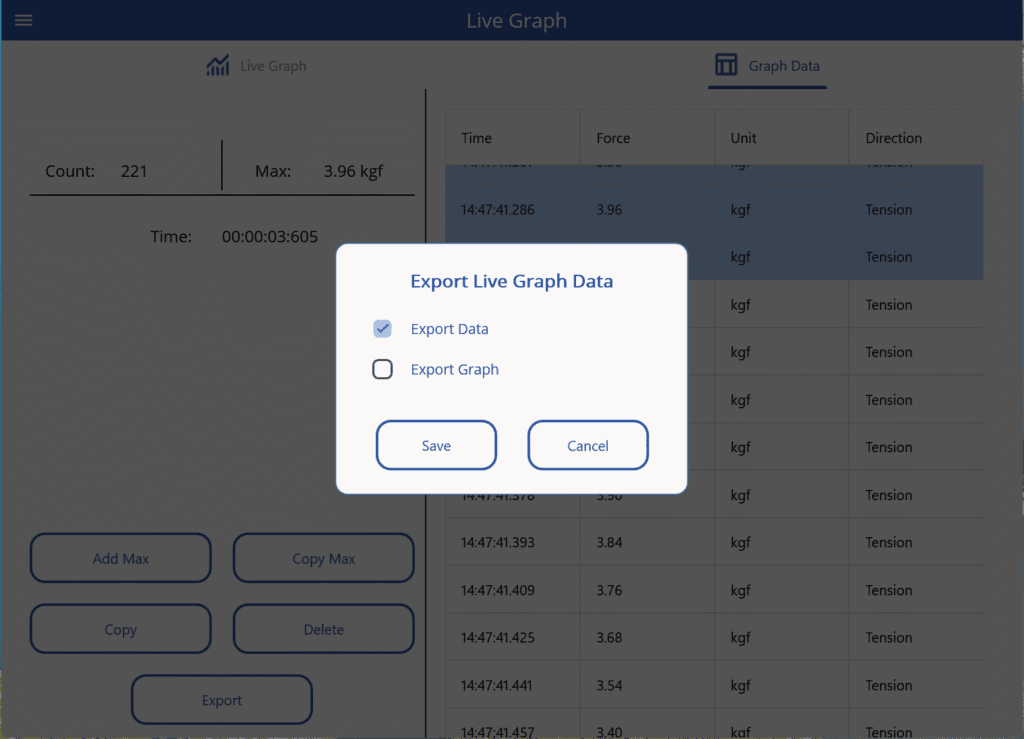 Write scripts in Python to interact with your force gauge using NexGraph’s Python library, ‘nexgraphpy‘. Install it using the ‘pip’ command. Tested with Python versions 3.10 and higher. Read the documentation here: https://python.nexgraphapp.com.